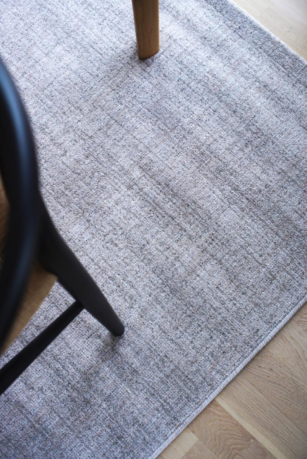 Mattan är vävd i mjukt men slitstarkt polyestergarn, vilket gör den både behaglig under fötterna och mycket enkel att hålla ren. Tack vare materialets smutsavvisande egenskaper är det lätt att ta bort fläckar och fräscha upp mattan vid behov – även vid spill av kaffe eller vin. Följ bara de enkla skötselråden: badda försiktigt med en torr frottéhandduk och torka sedan av med en lätt fuktad handduk – så ser mattan ut som ny igen.