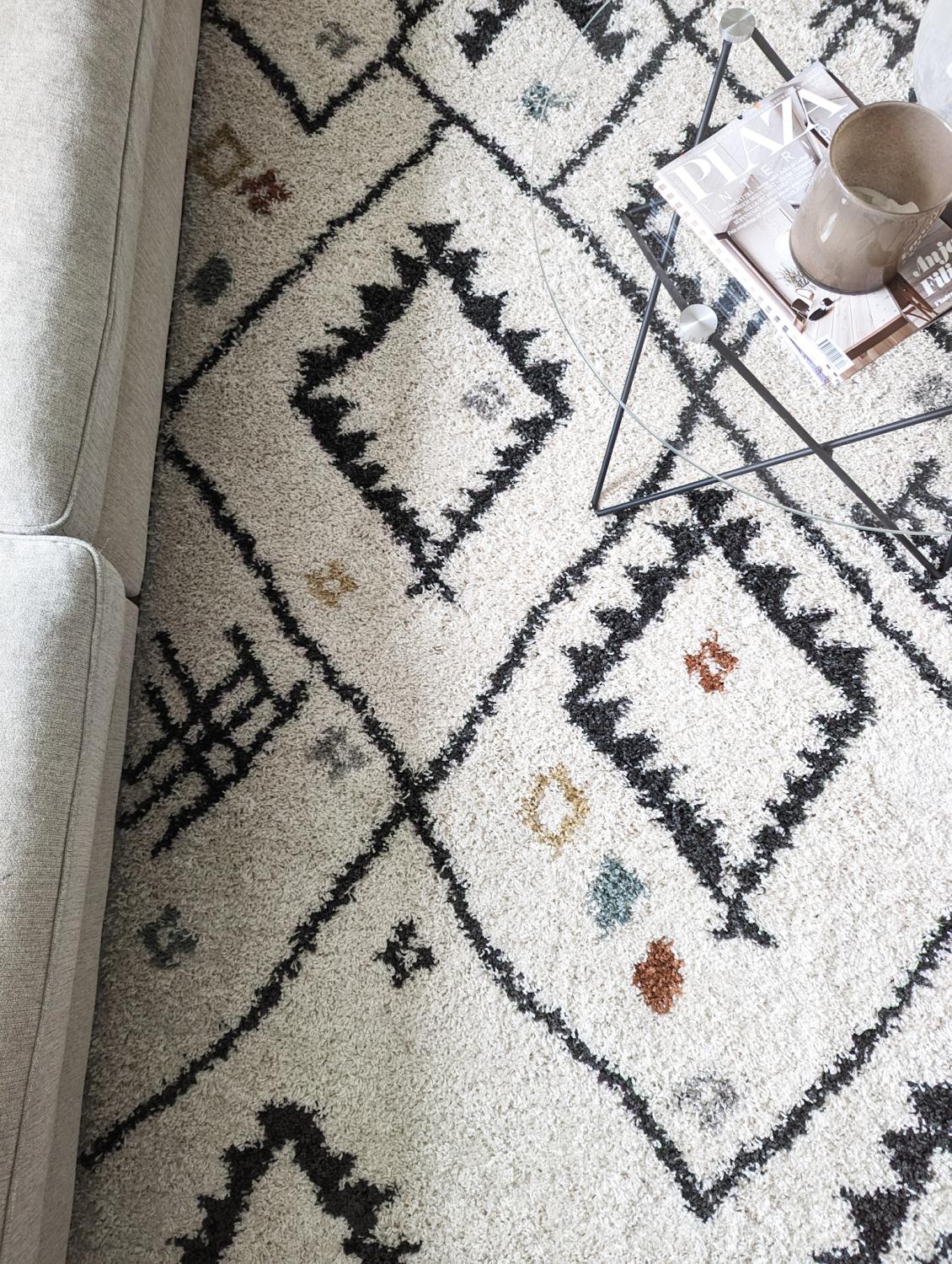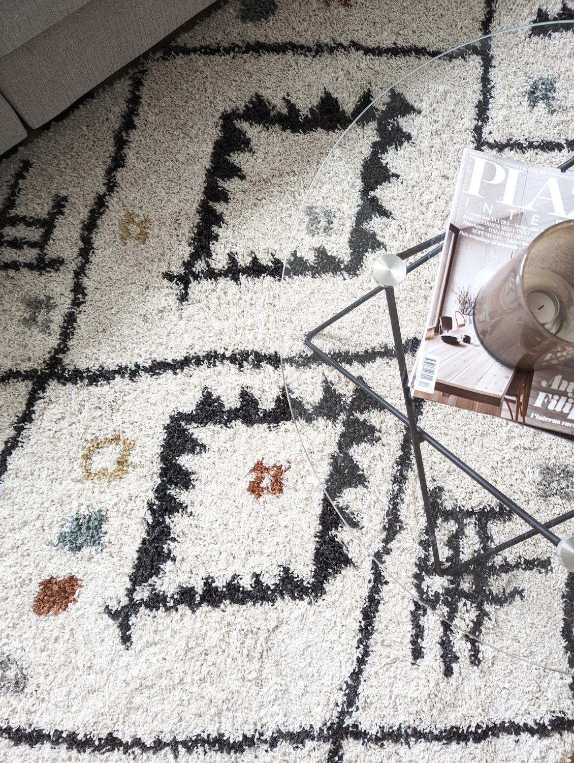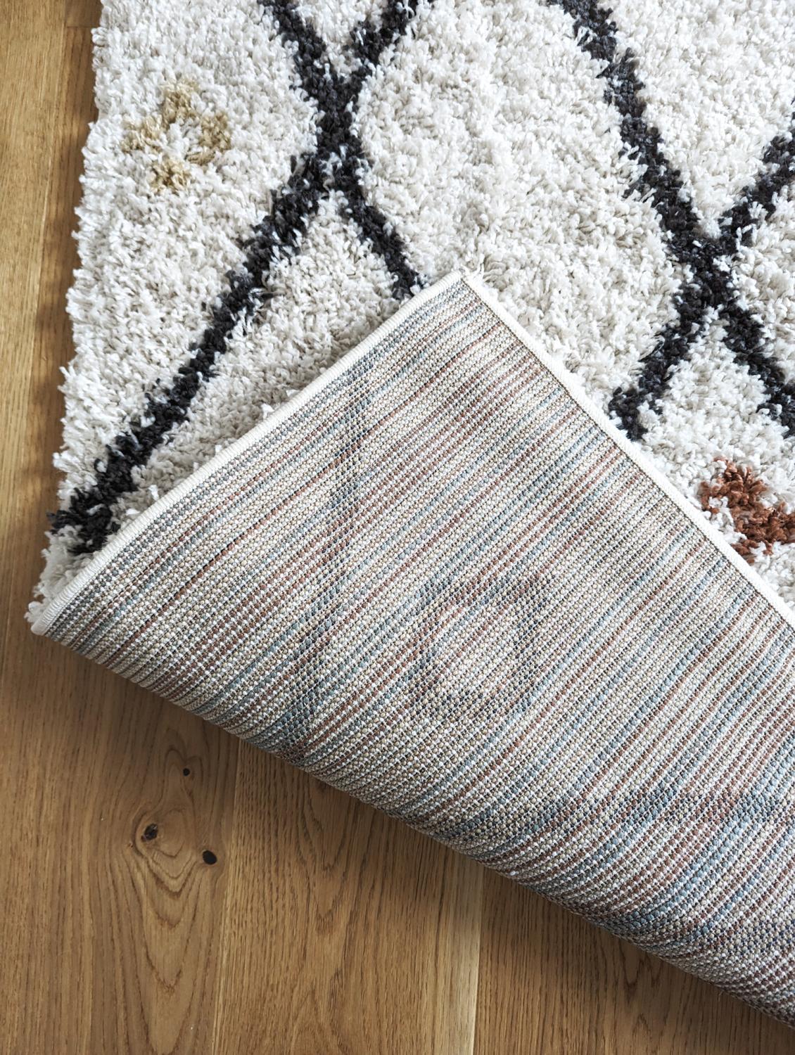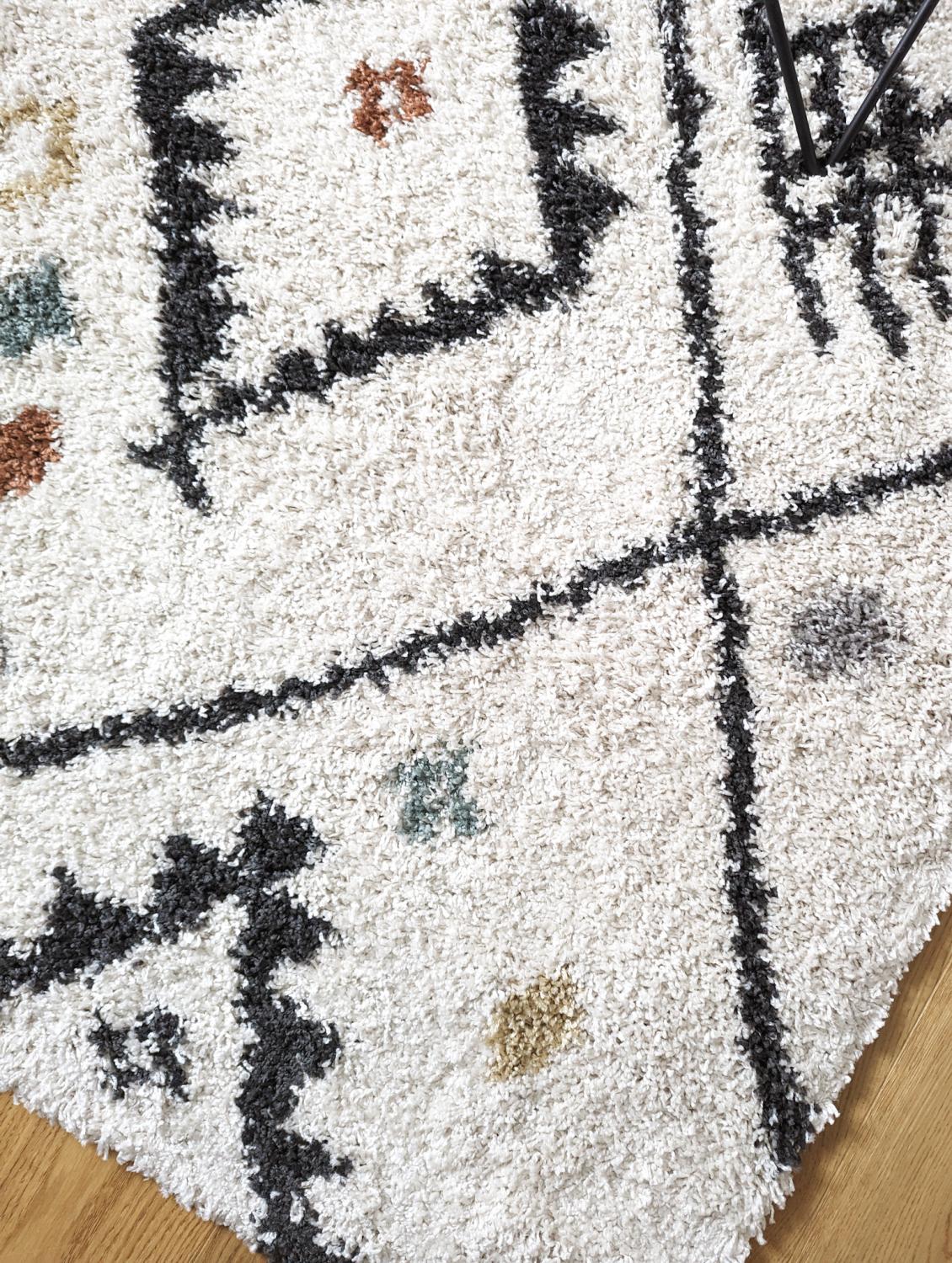 Bohemian Vit är maskinvävd och pryds av ett mörkt antracitgrått kilim-mönster som skapar en vacker kontrast mot den vita bakgrunden. Färgglada romber i grönt, terrakotta, grått och ljust grått är prydligt utplacerade över mattan, vilket ger den en livlig och dynamisk karaktär. Det mjuka och fluffiga garnet ger mattan en subtil glans som ger den en elegant och stilfull look. Denna matta är inte bara vacker att se på utan också mycket bekväm att använda. Dess mjuka yta gör den perfekt att vila fötterna på, och dess stilrena design gör att den lätt passar in i många olika inredningsstilar.