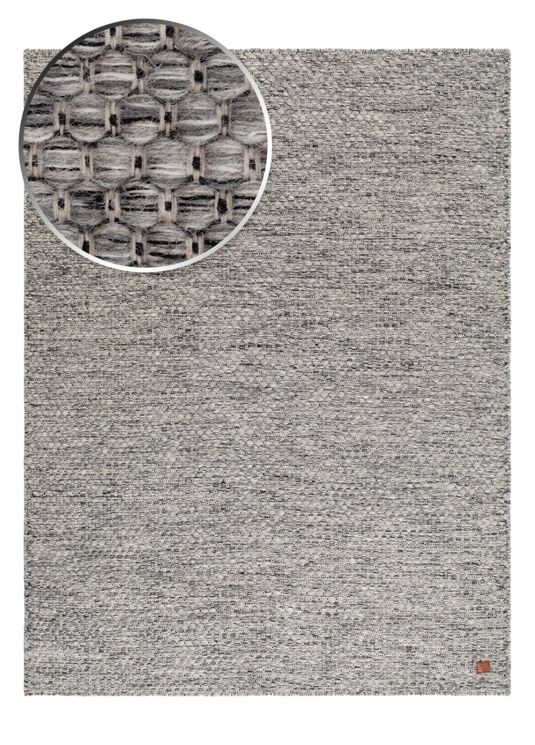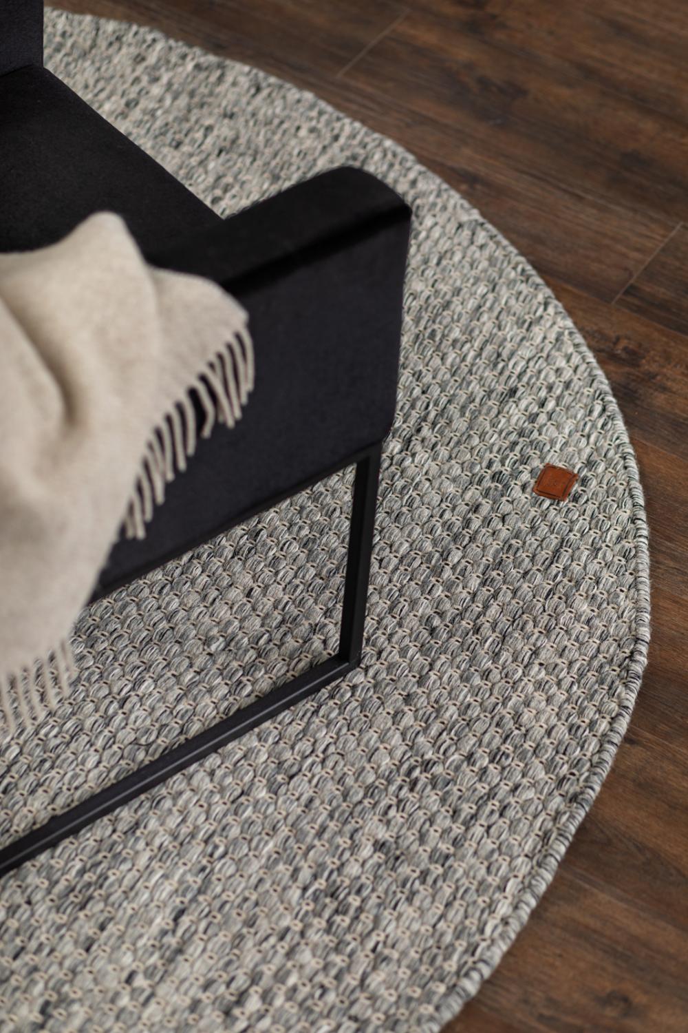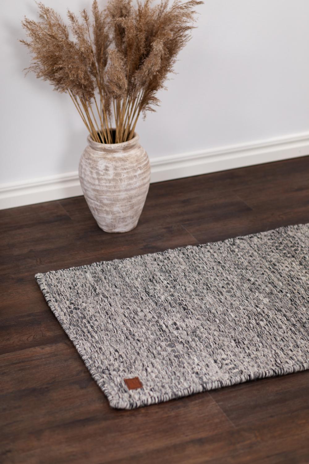 Kerala är en handvävd matta med en modern känsla, där mjuka grå, vita och svarta toner blandas med svart varptråd för att skapa en levande, melerad struktur. Den stilrena färgkombinationen gör att mattan smälter in vackert i alla typer av inredningar, och dess vändbara design gör att du kan använda båda sidor för längre hållbarhet och variation.