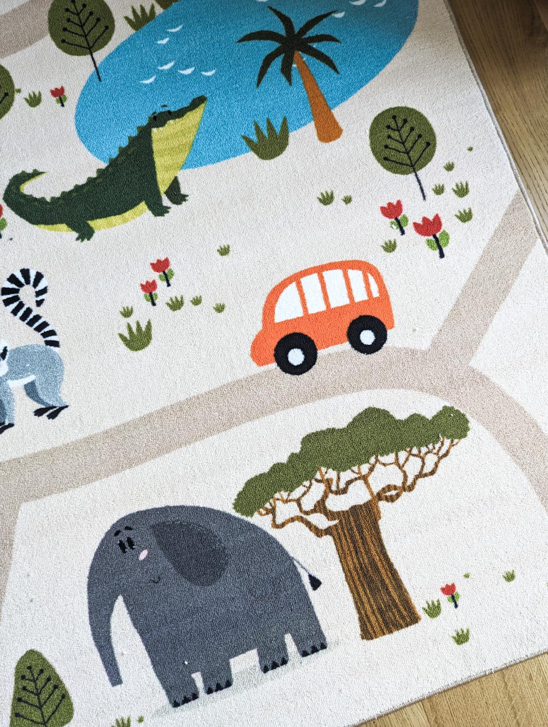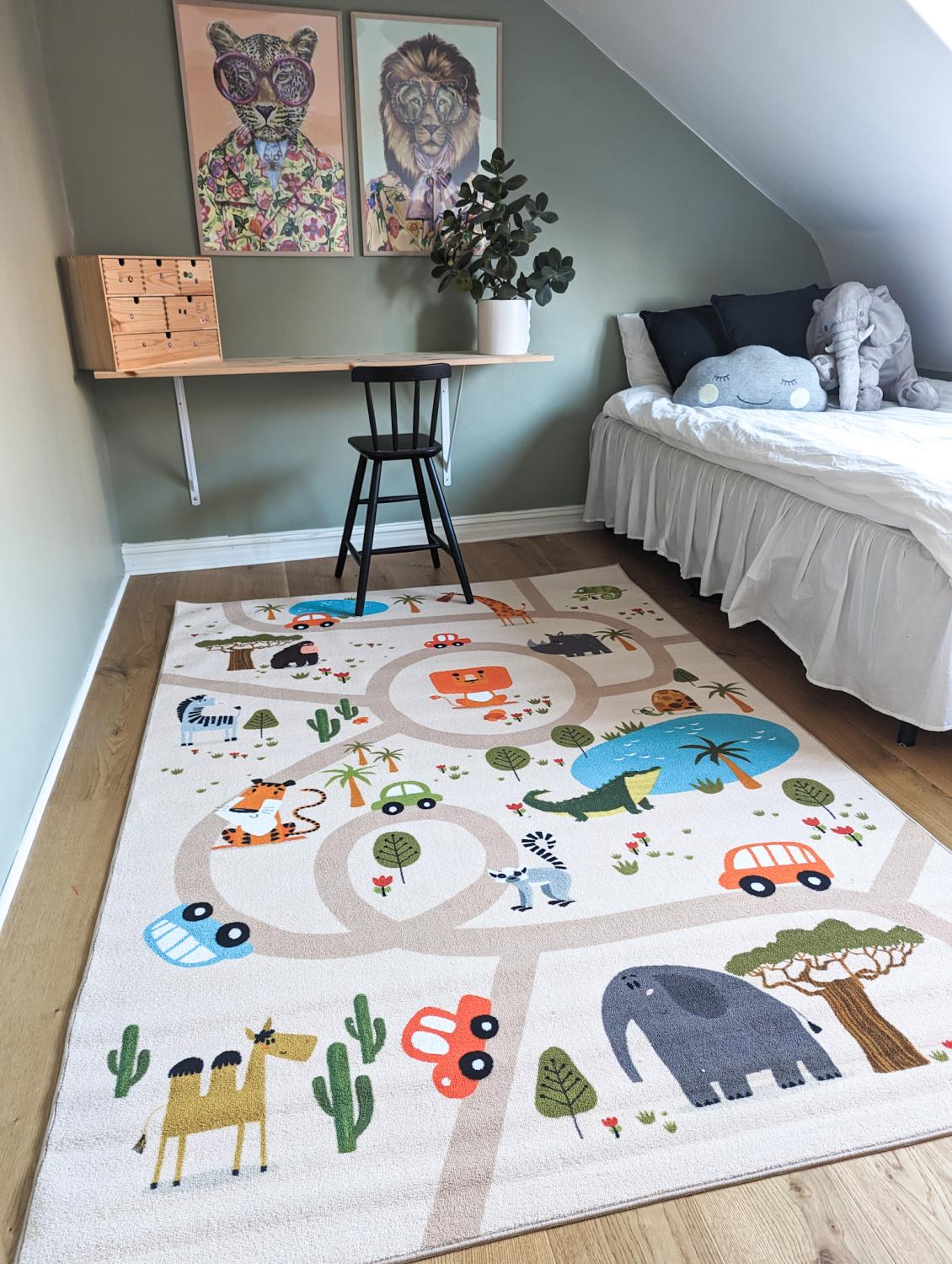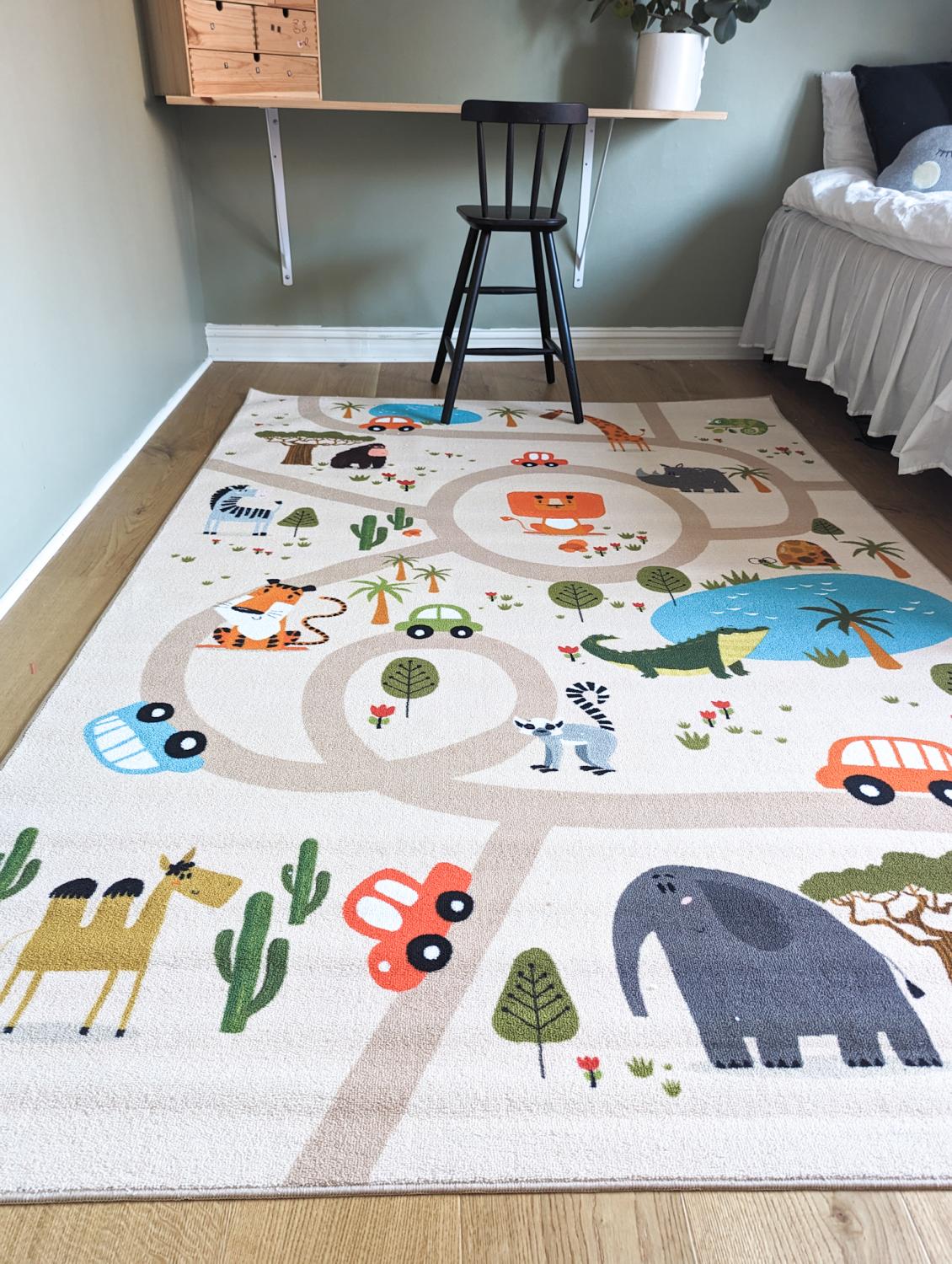 Vår barnmatta Safari Road Natur är den perfekta tillskottet till barnrummet, kombinerar både stil och funktionalitet på ett fantastiskt sätt. Denna matta är speciellt utformad för att skapa en rolig och inbjudande miljö för barnen samtidigt som den är lätt att sköta och miljövänlig.
