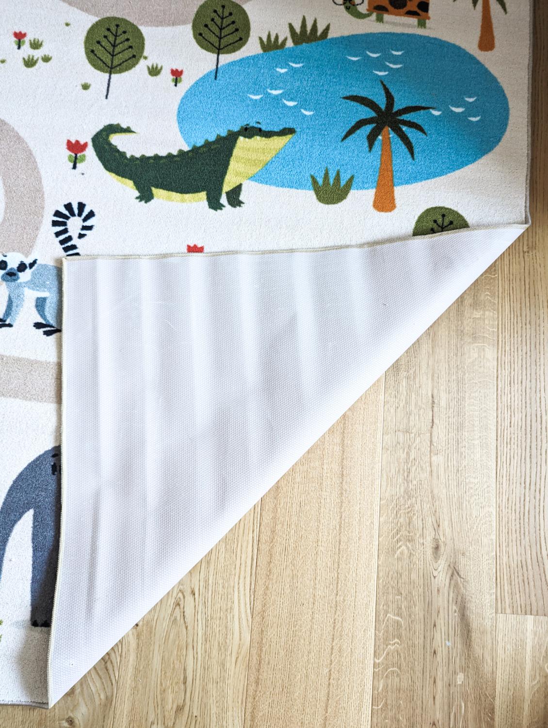För att säkerställa säkerheten och stabiliteten har Safari Road Natur-mattan en gelbacksida som säkerställer att den ligger stadigt på golvet och förhindrar att den glider runt. Detta gör den också halksäker och minskar risken för olyckor.