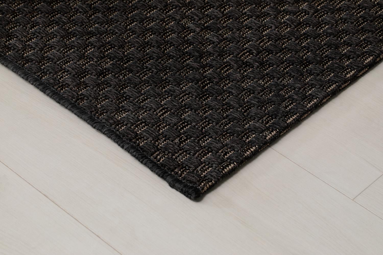 Sunrise-mattan är en elegant och funktionell flatvävd matta som kommer att förvandla ditt utrymme med sin tidlösa design och slitstarka kvalitet. Med en mörkgrå bottenfärg och matchande langettering skapar den en sofistikerad atmosfär oavsett var den placeras.