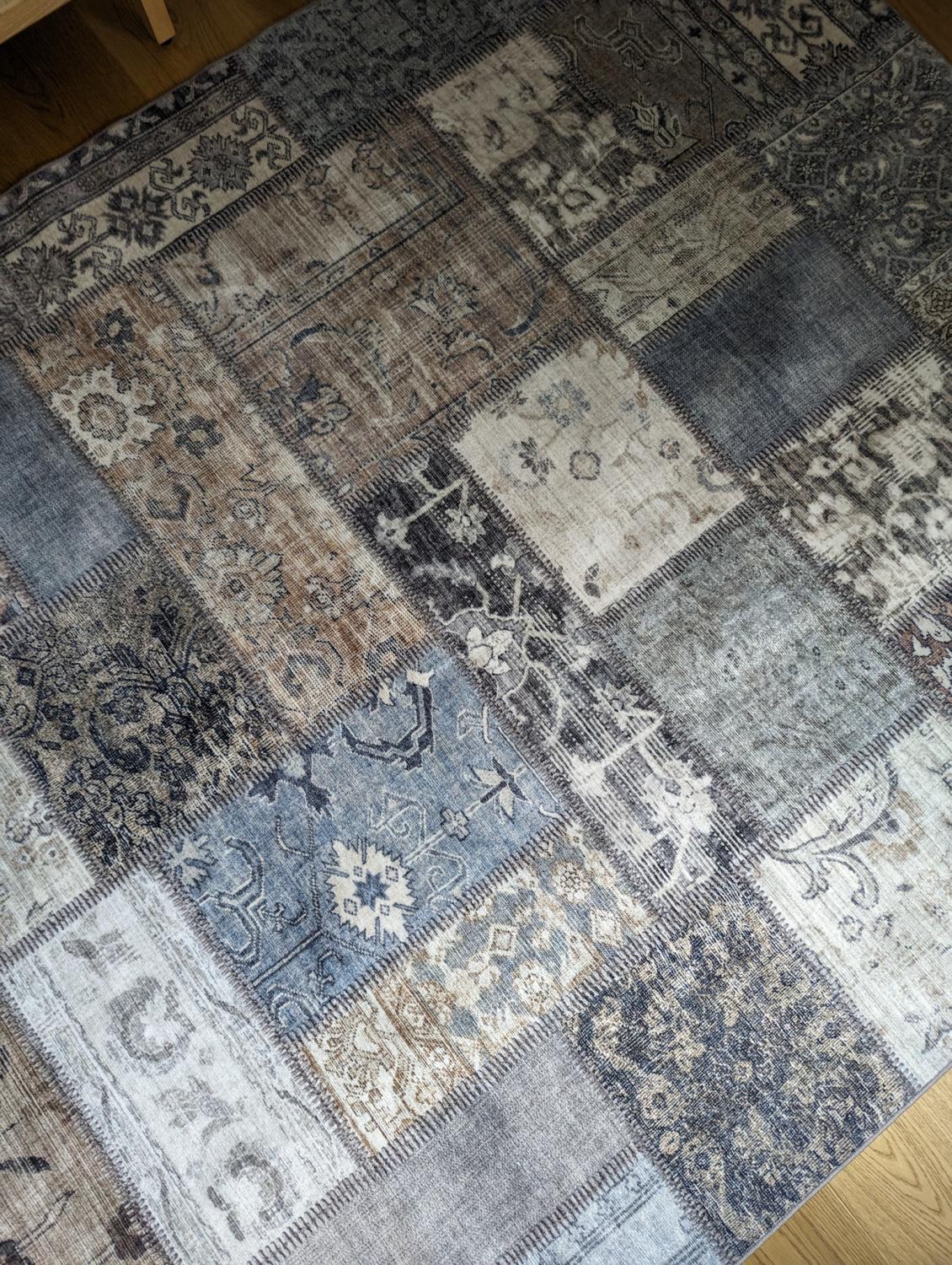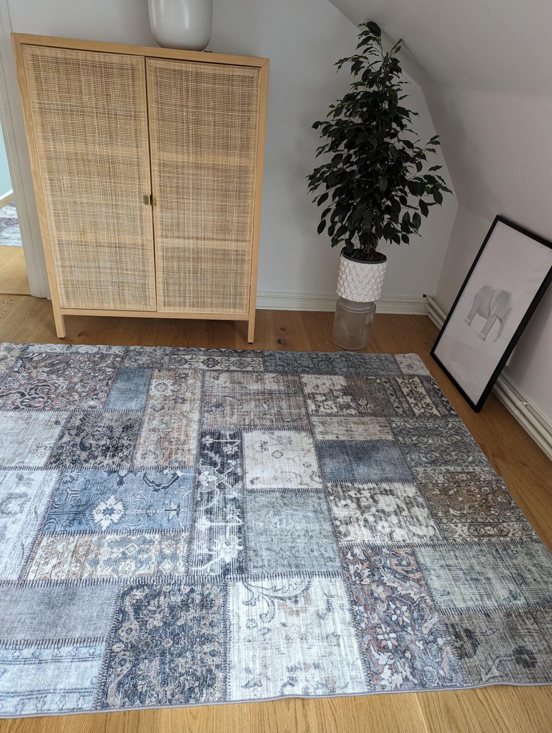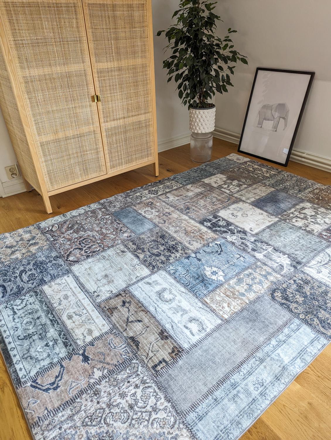 Vår matta Vittoria är en charmig och mångsidig inredningsdetalj med ett rutigt patchwork-mönster som ger en känsla av tradition och hemtrevnad. Varje fält i mönstret har olika färger och toner, vilket skapar en livlig och dynamisk visuell effekt. Rutorna och deras mönster går i flera färger såsom blått, grått, nougat och rött, alla snyggt sammanflätade med en elegant "söm".